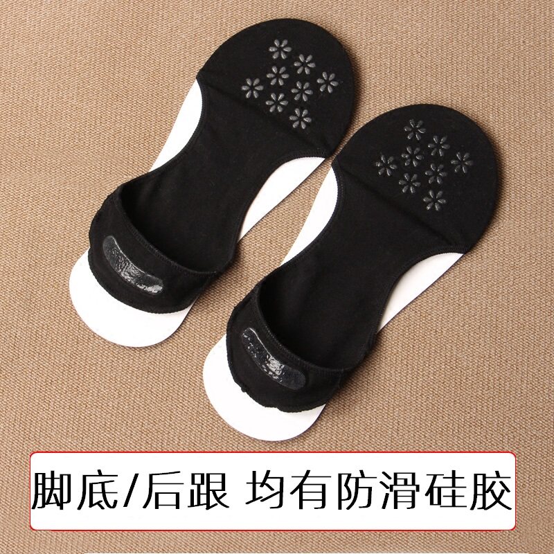 Women's spring and summer thin cotton non-side invisible boat socks heel bottom with non-slip silicone does not fall with pure cotton boat socks