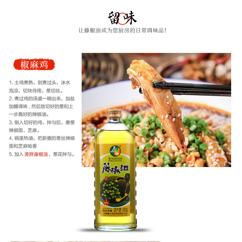 Luzhou-flavor Washan Vine pepper oil 500ml Sichuan Hongya specialty special linen bowl chicken cold green pepper oil