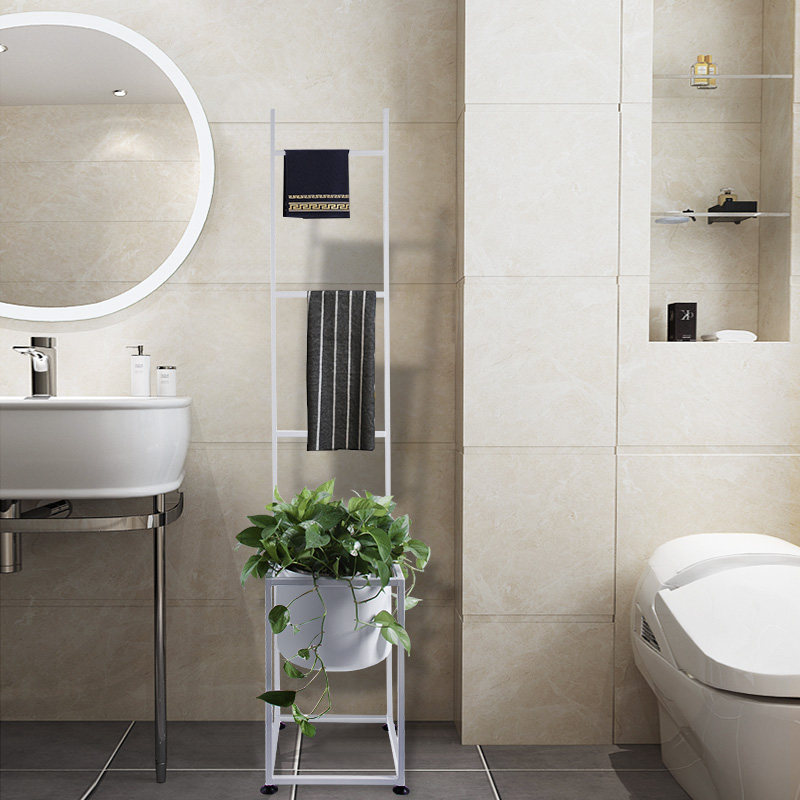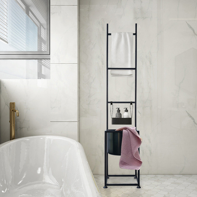 Nordic simple bathroom towel rack Wrought iron creative flower rack Bath towel rack One-piece floor-standing storage shelf free of holes