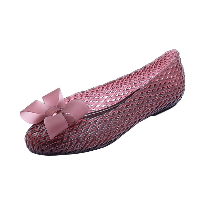 2022 summer bow hollow breathable jelly shoes flat heel waterproof soft beach shoes travel all-match women's rain boots