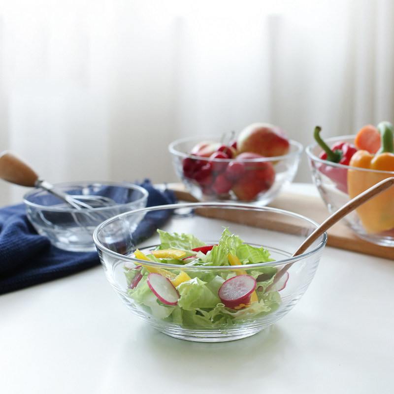 Thickened glass bowl salad bowl Blister Noodles Bowl Home Pure Color Large Bowl Transparent Salad Fruit Bowl bowls Bowl Cutlery Sets