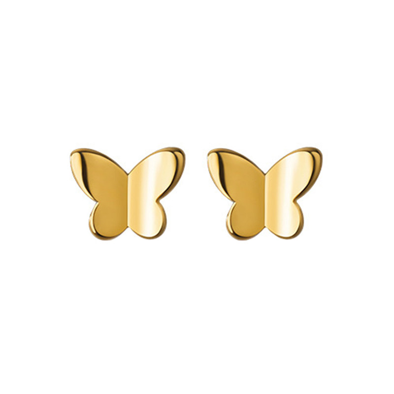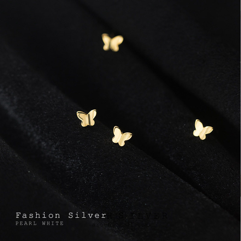 Golden Butterfly Earrings s925 Pure Silver Gold Plated Temperament South Korea Individuality Brief About 100 Hitch Mini Raising Earhole Silver Decorated Woman