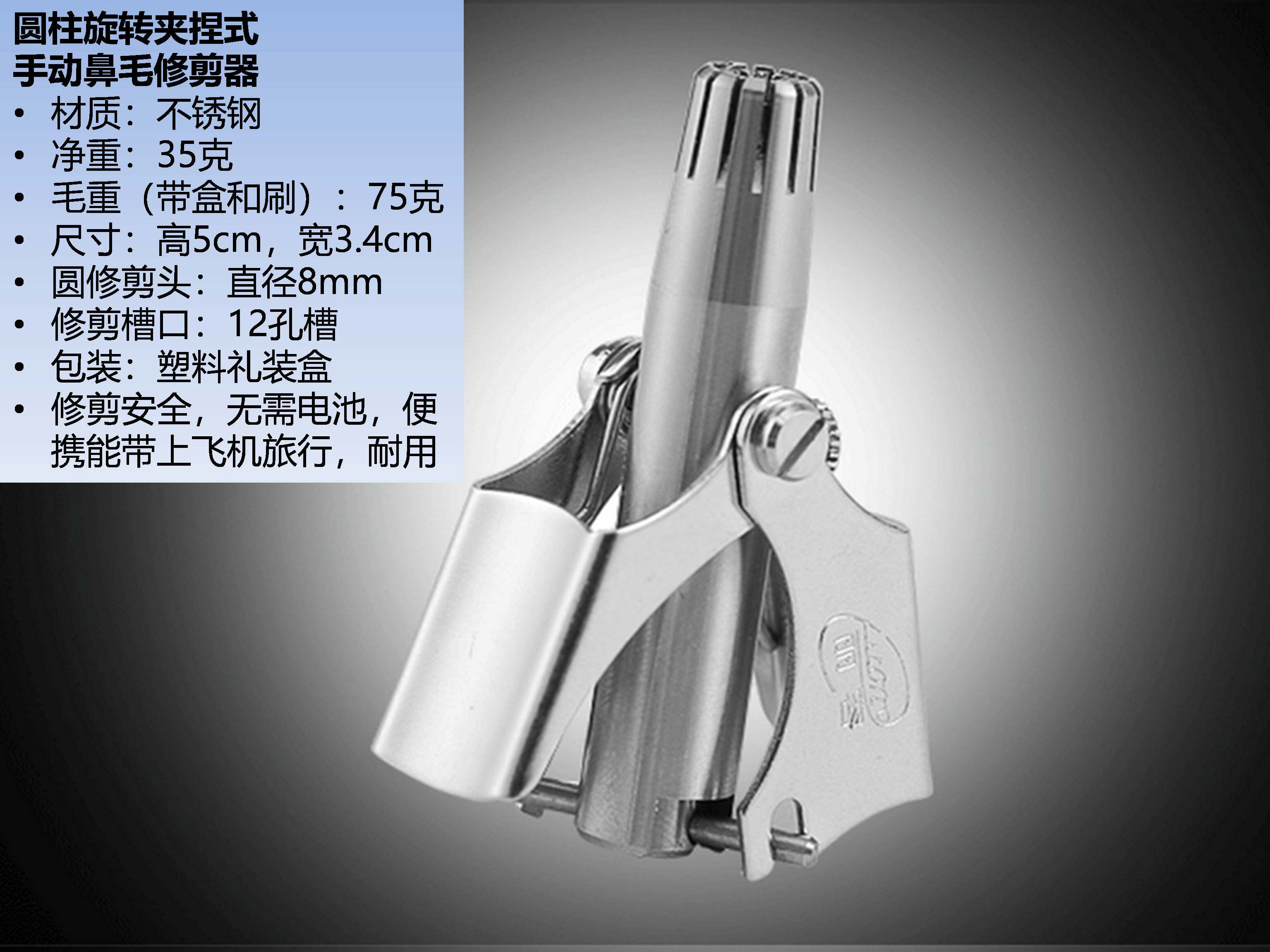 Nose - hair - trimmer Stainless steel manual round head shaved nose - cutting cylindrical rotation clamp pinched non - electric male and female
