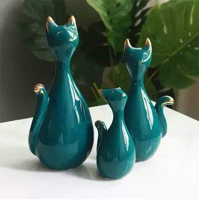 Ceramic fortune cat ornaments home wine cabinet porch decoration animal couple shop opening creative gifts