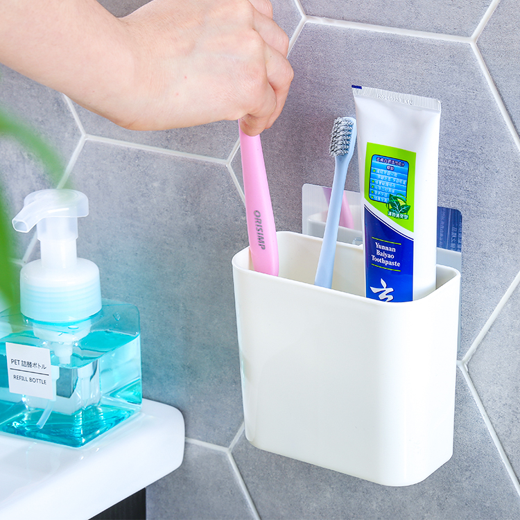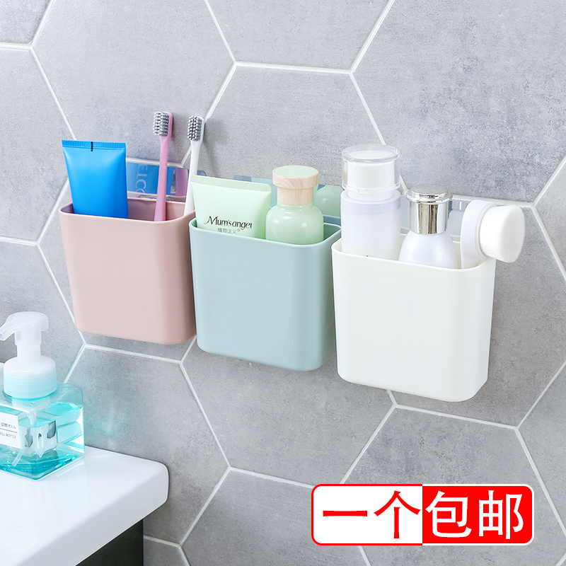 Powder room toothpaste box toothbrush cartridge suction cup storage box comb wall-mounted punch-free suction wall rack toothbrush holder