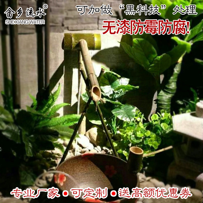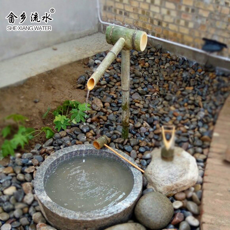 Japanese bamboo flowing water ornament garden stone trough cylinder pot pot landscape perpetual motion circulating water fountain fish tank bamboo water flowing water vessel