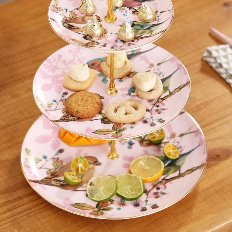 Pink Flower Bird Double-layered Fruit Pan Pink Flower Bird Triple Fruit Tray