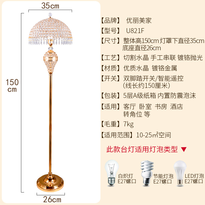 Light and luxurious crystal floor lamp Living room Bedroom Bedroom headlights Inwind High sense 2021 new tea table upright table lamp