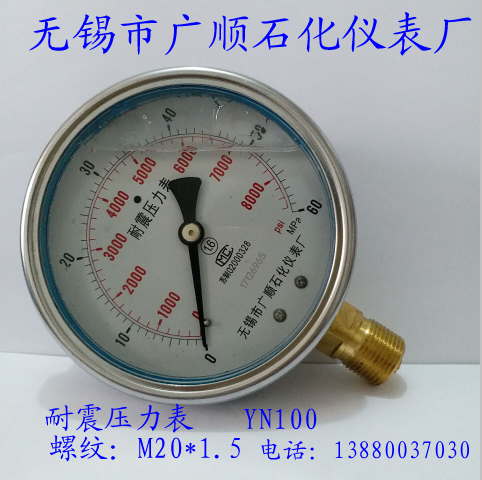 Wuxi Guangshun Pressure Watch YN100 SHOCK RESISTANT PRESSURE METER M20 * 1 5 radial mounting