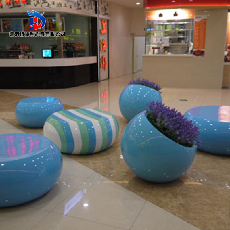 Painted Striped Glass Fiber Casual Seat Cartoon Candy Sculpture Combo Outdoor Mall Swing Piece Round Stool Rest Chair