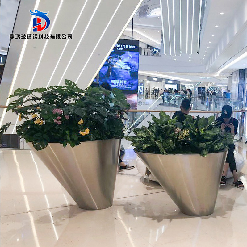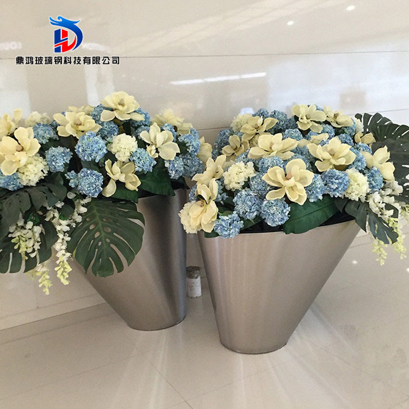 Fiberglass flower pot combination flower pot square green plant shopping mall hotel decoration decoration oblique mouth floor large vase