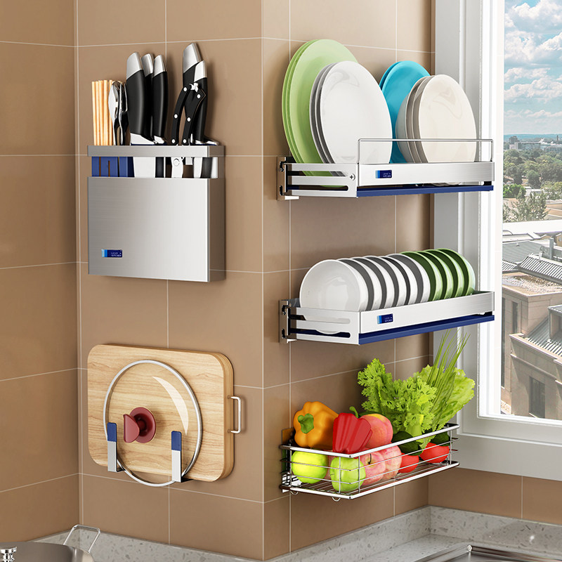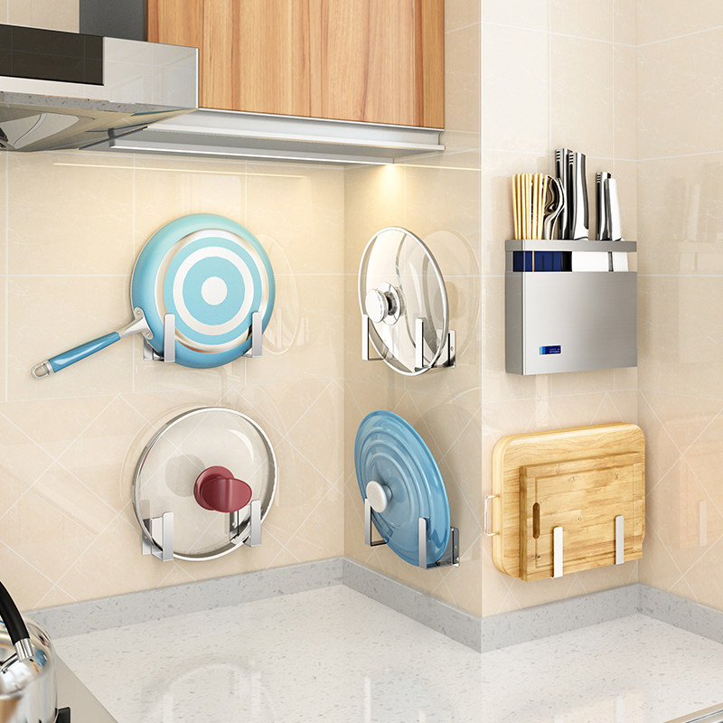 Pot cover storage shelf 304 stainless steel non-perforated kitchen shelf Wall-mounted chopping board Chopping board Cutting board knife holder