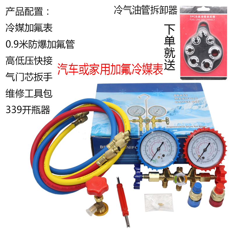 Automobile air conditioner plus fluoride meter tool set ice species snow species pressure gauge plus liquid pressure R134A refrigerant double meter valve