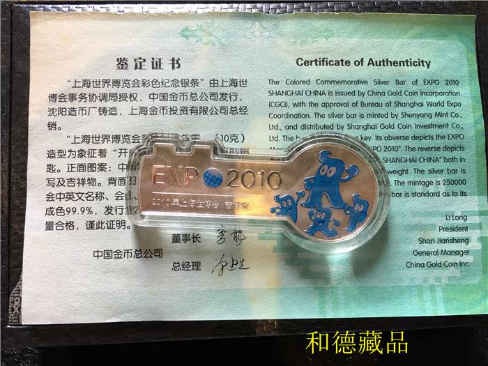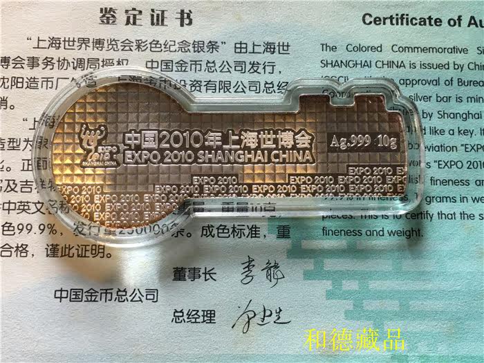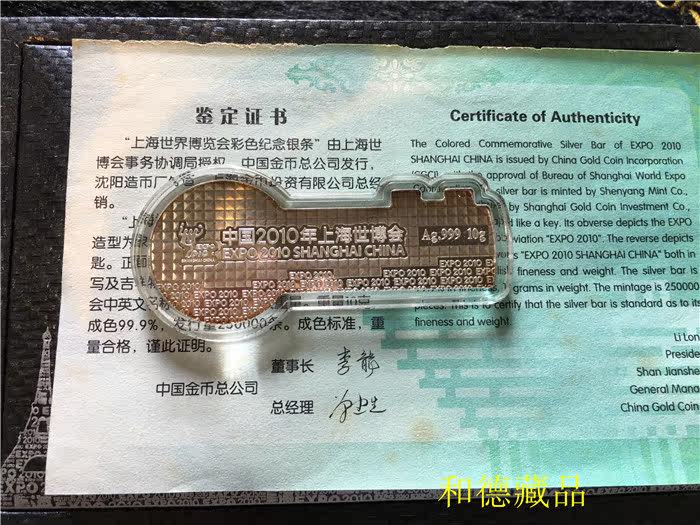 China gold coin head office 2010 Shanghai Expo 10 gr pure silver commemorative silver and silver key