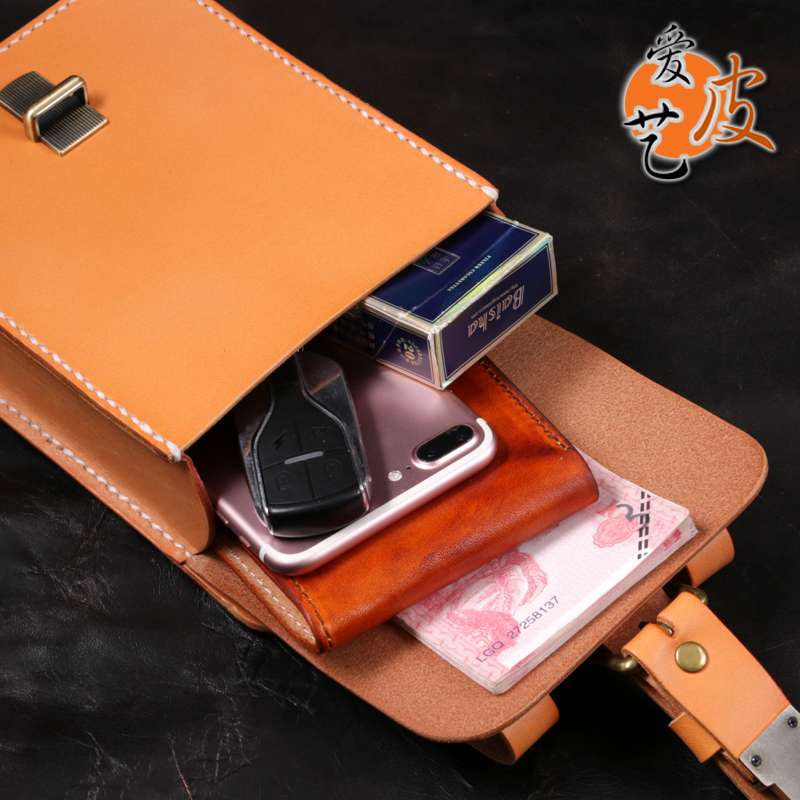 Love leather art locomotive riding Harley bag leather thick hand seam tanning thick hard cowhide handmade running Bag Men's locomotive