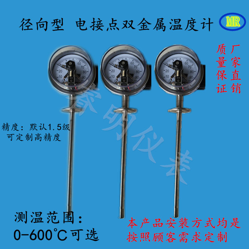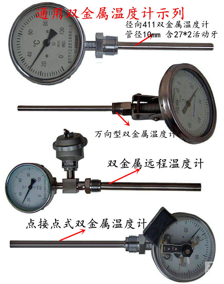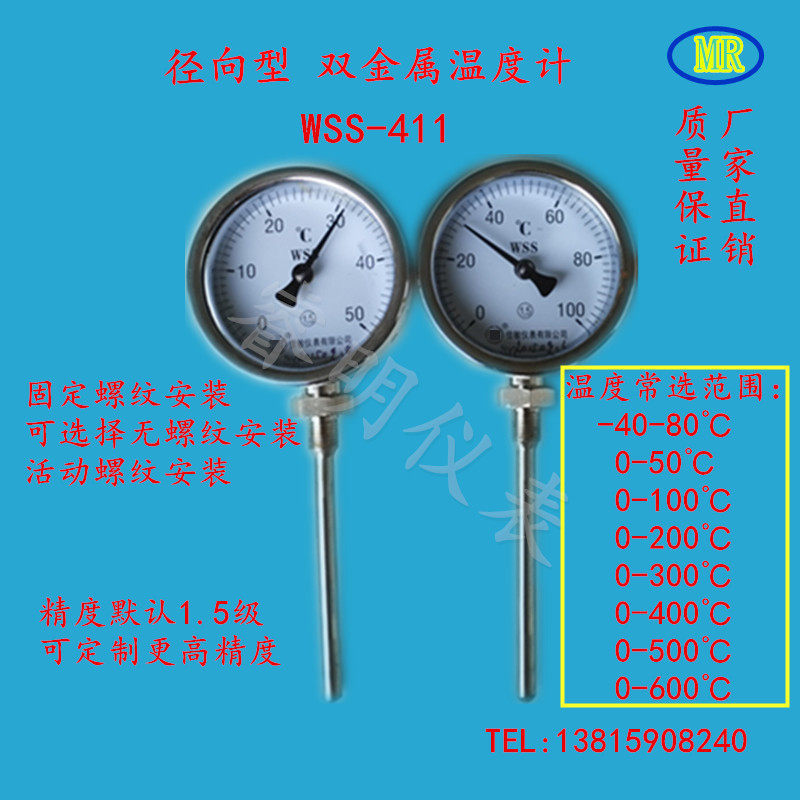 Factory Pin pointer Double metal thermometer WSS-401 411 Industrial boiler pipe temperature measurement specs complete