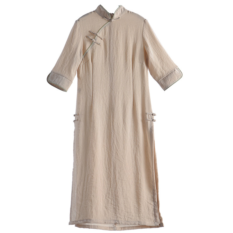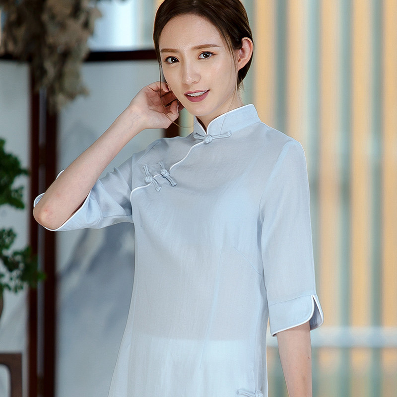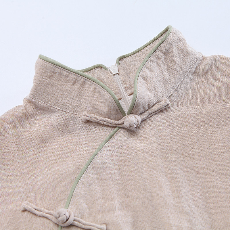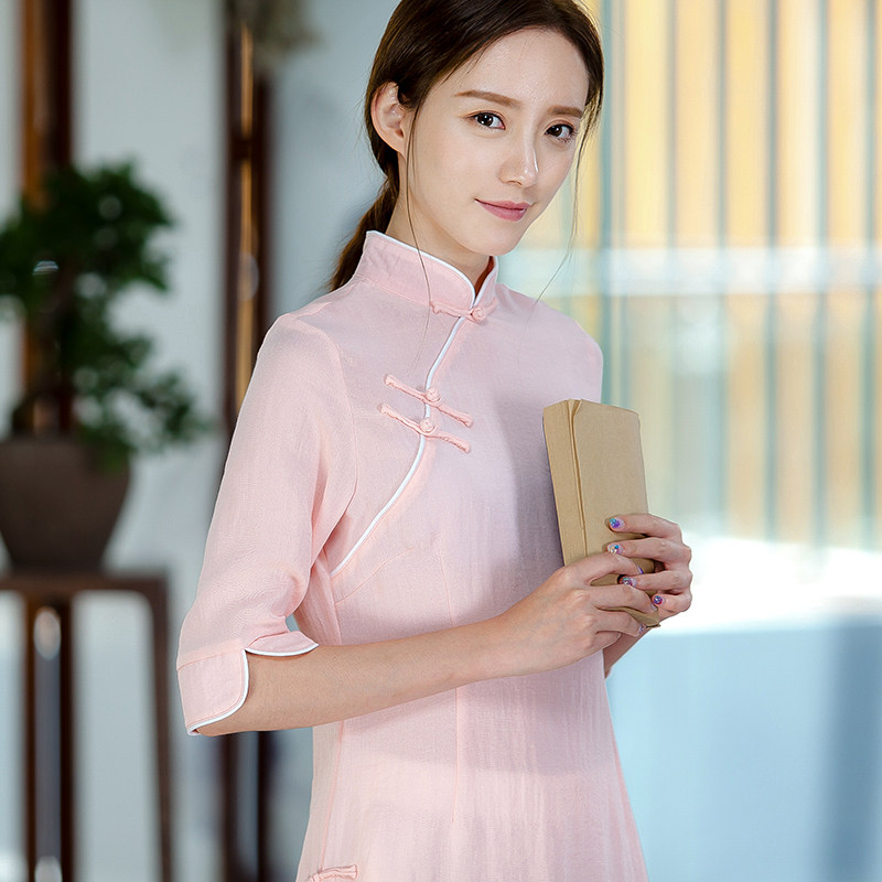 Pick up the leak thin breathable cotton and linen women's summer ethnic style Chan Yi slim-fitting Odai Cheongsam young tea suit suit