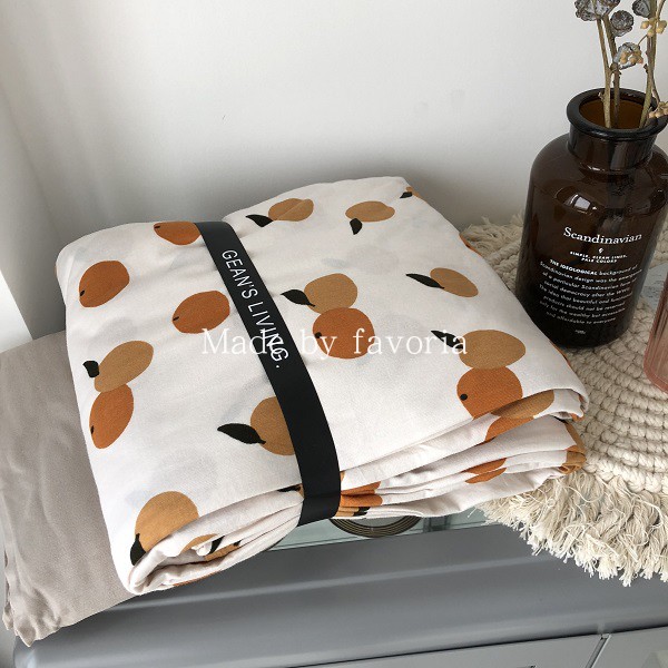 ins Korean style knitted cotton printing four-piece set Small loquat orange French bucket Japanese naked sleeping Tianzhu cotton single double