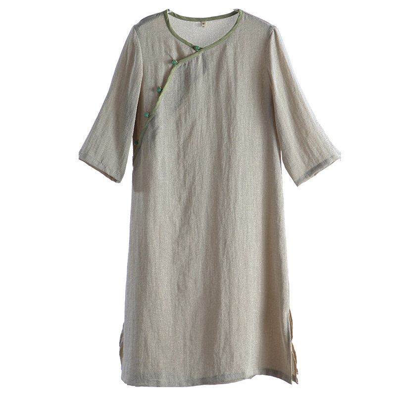 Pick up leaky Buddha clothes Female Summer modified Cheongsam top Female medium and long version of tea dress Female Zen suit Summer little man