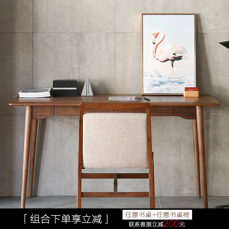 Handcrafted wood-made new original furniture Nordic Japanese-style solid wood black walnut computer desk with drawer solid wood desk