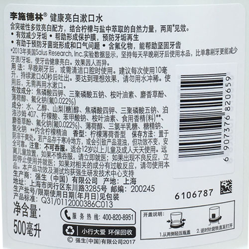 Lischtlin mouthwash healthy bright white 500ml antibacterial whitening protection gums fresh breath to remove calculus