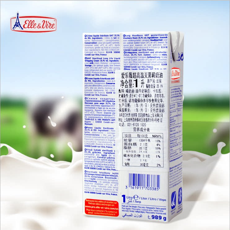 Iron Tower Light Milk Oil Philharmonie Wei Animal Rare Fresh Cake Framed to bake Home Raw materials France Imports 1L