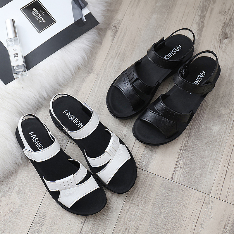Summer new flat bottom ladies middle-aged women shoes fashion thick bottom non-slip soft bottom 2022 genuine leather with mom sandals