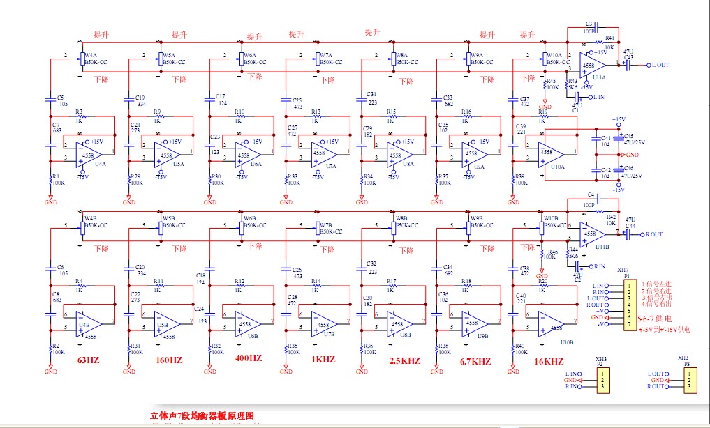 Double DC power 7 - channel adjustable frequency 7 - segment stereo two - channel EQ graph equilibrium plate tone pre - level board