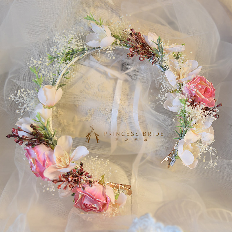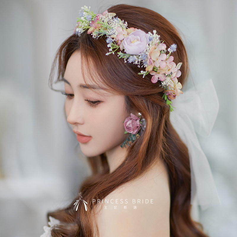 Sen Department Bridal Wedding Headwear Super Fairy Sweet Hair Hoop Earring Set Pastoral Style Korean Silk Yarn Wedding Hair Accessories