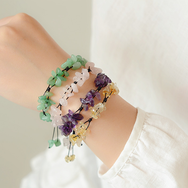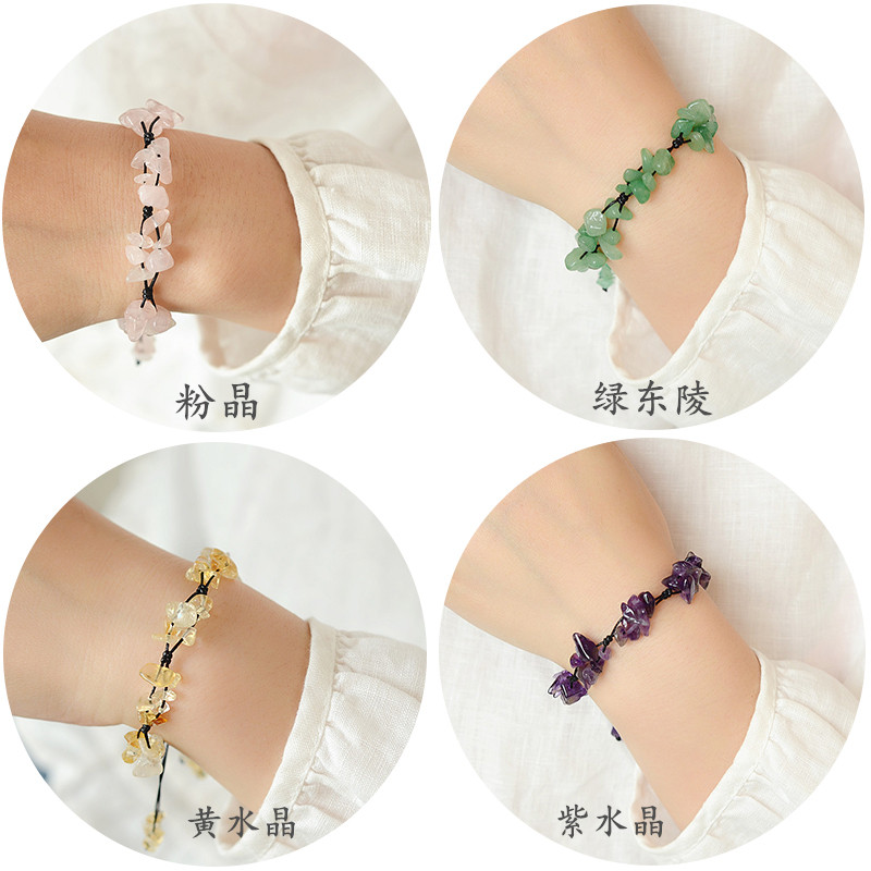 Forest Department Powder Crystal Purple Crystal East Mausoleum Jade Yellow Crystal With Shaped Gravel Crushed Flower Weave Adjustable Bestie Hand Alchemist