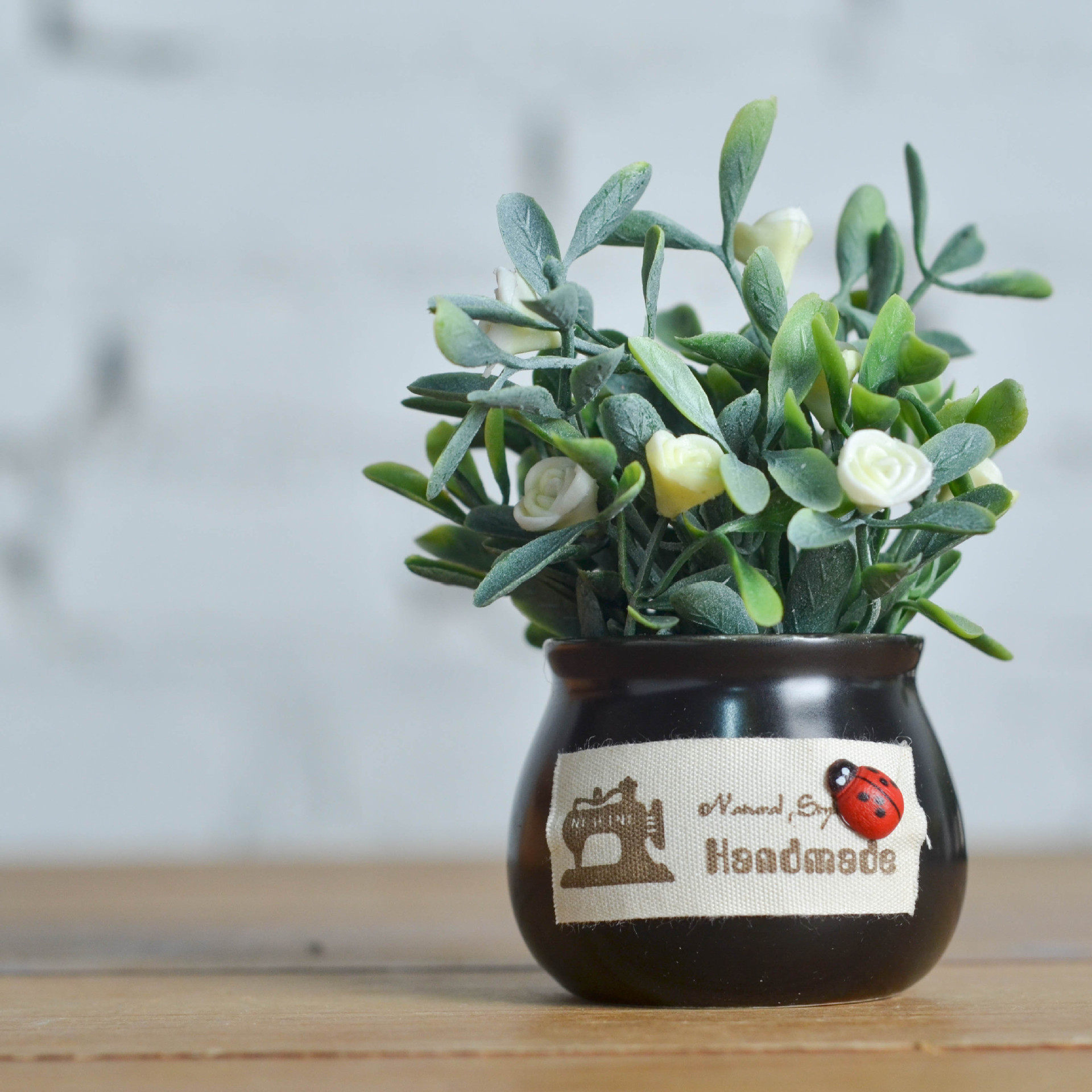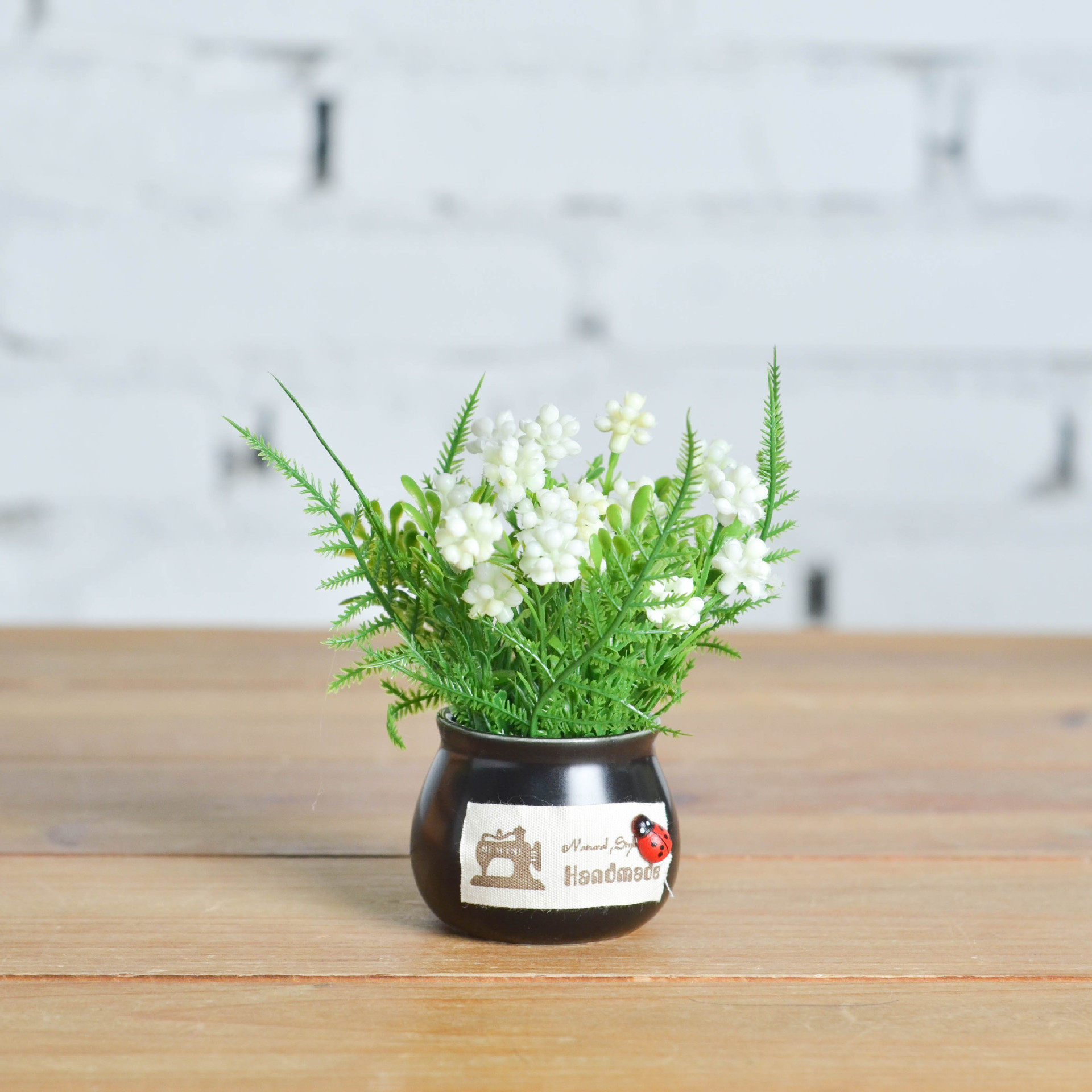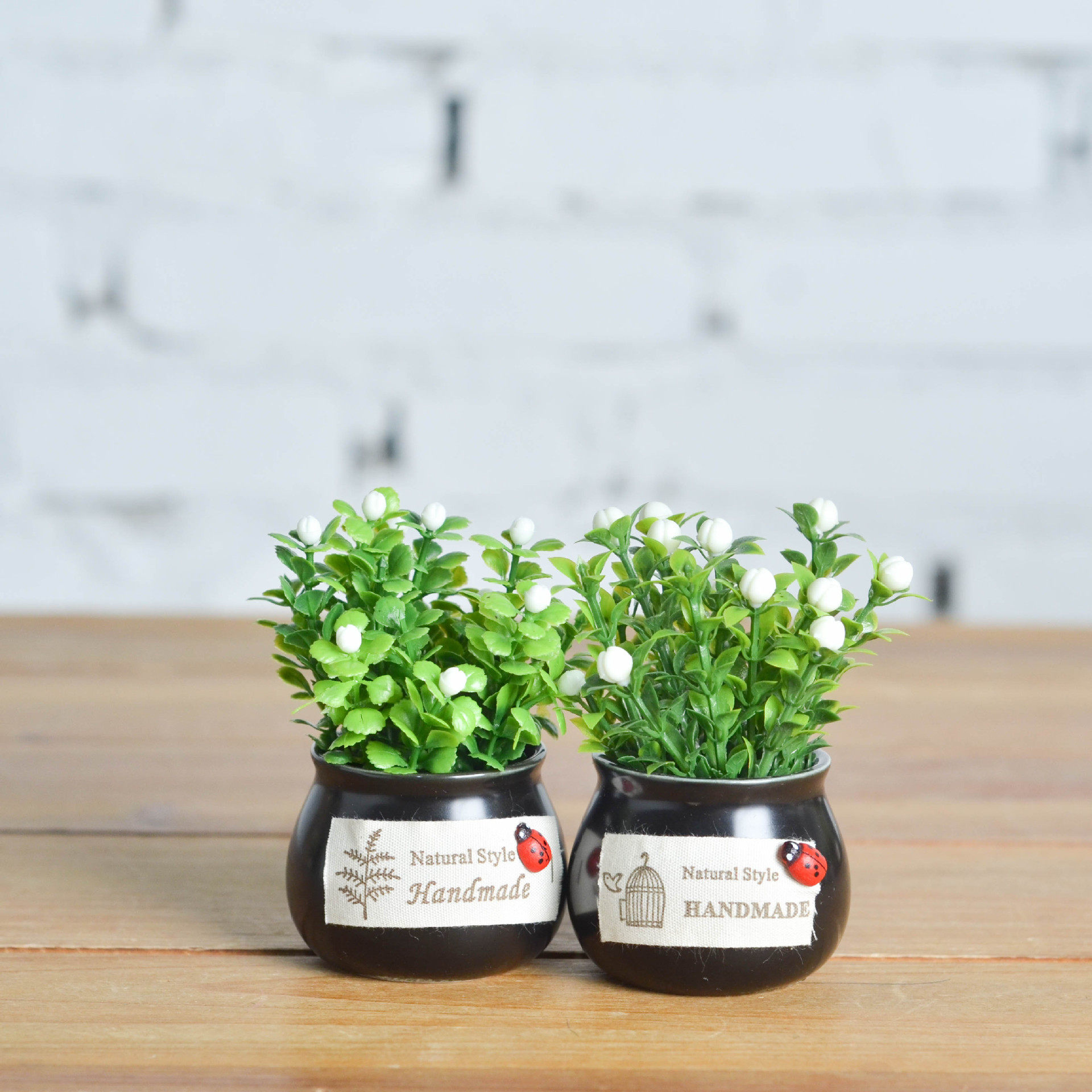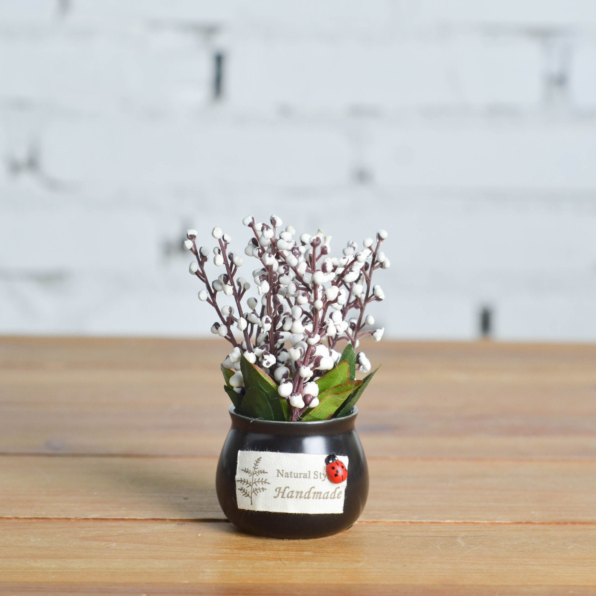 New black mini ceramic round cylinder simulation plant simulation flower potted car indoor creative decoration