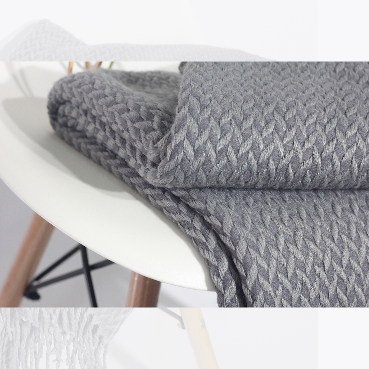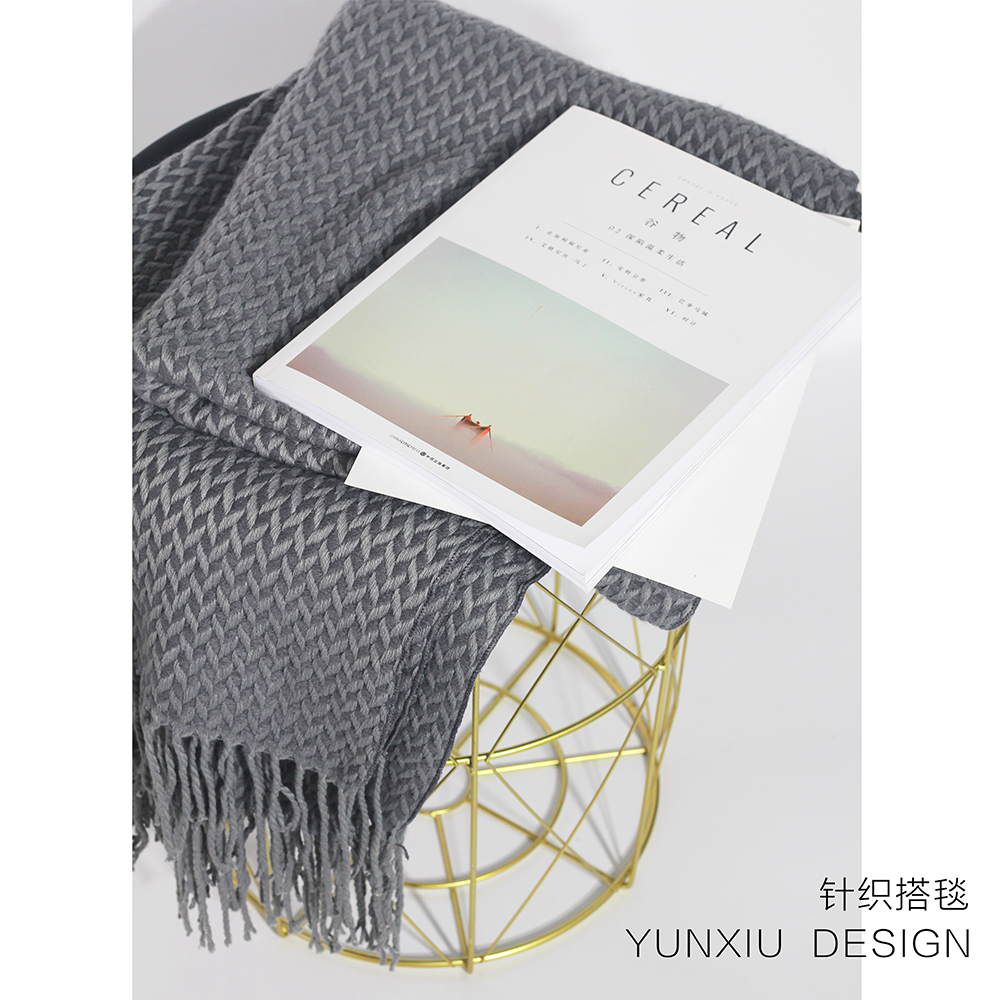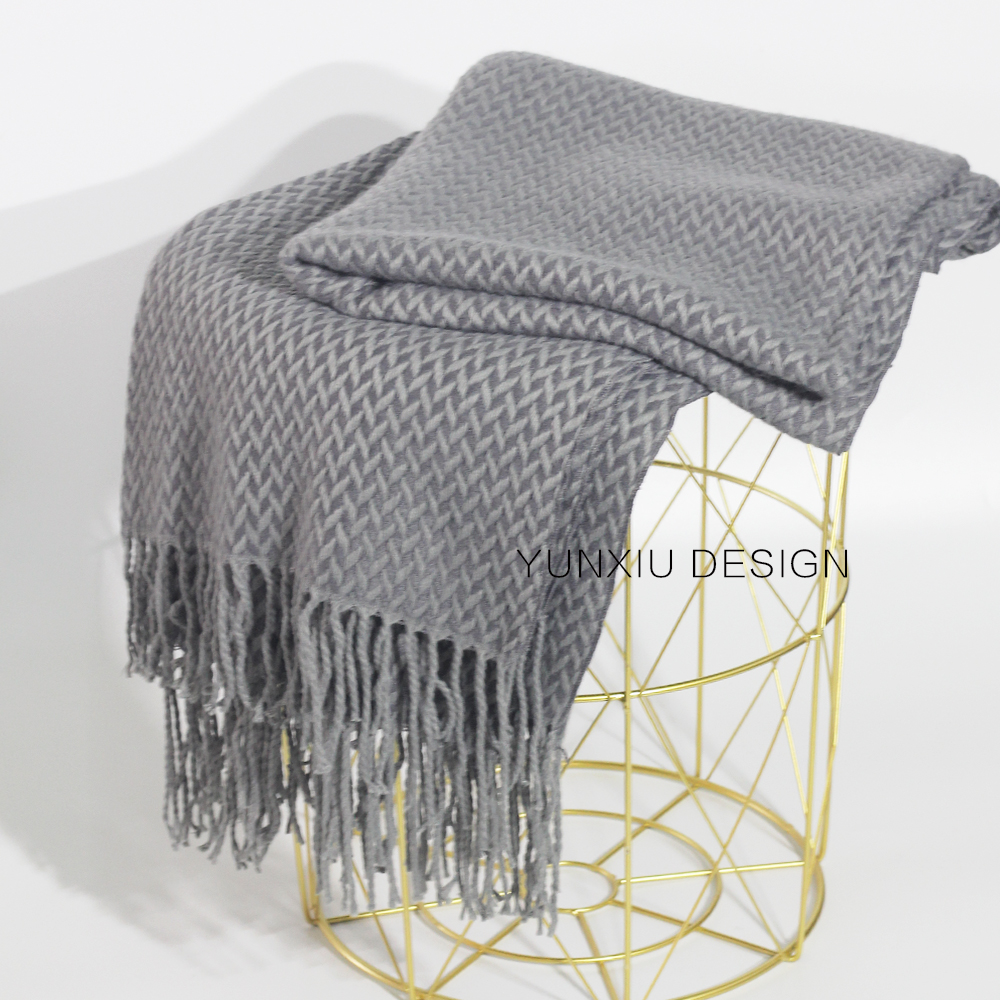 Nordic IKEA wind pure cotton knitted blanket knitted casual blanket gray woven geometric pattern sofa blanket bed end blanket