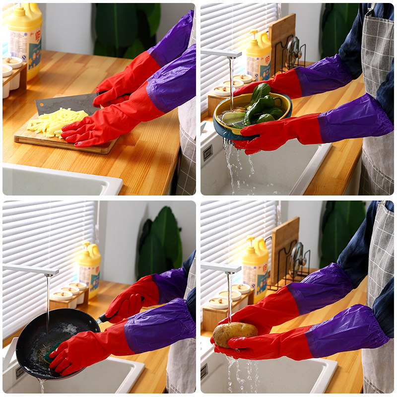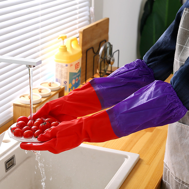 Winter washing gloves kitchen cleaning plus velvet thickened rubber latex washing clothes waterproof plastic leather housework durable