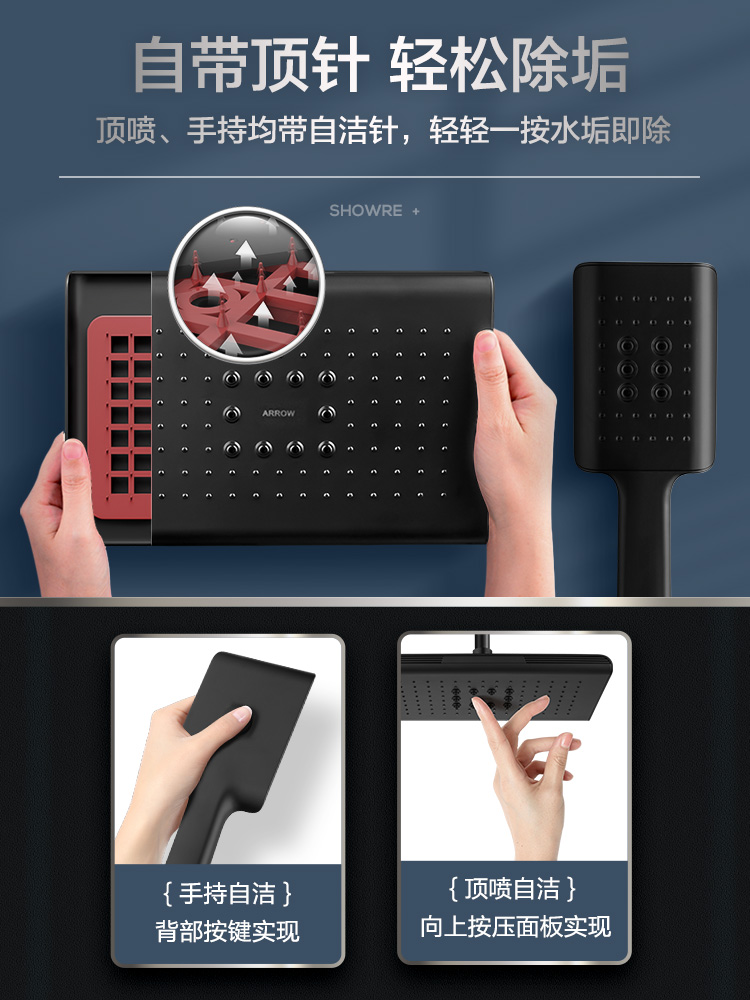A (three-function self-cleaning shower) descaling pressurized large top spray B model (three-function placement shower) descaling pressurized large top spray C model (four-function massage shower) mixed massage large top spray D model (four-function face value shower) slim pressurized large top spray E model (four-function constant temperature shower) self-cleaning and descaling large top spray A model (value-added package) three-function shower + space aluminum six-piece set C model (value-added package) four-function shower + space aluminum six-piece set E model (value-added package) four-function constant temperature shower + space aluminum six-piece set