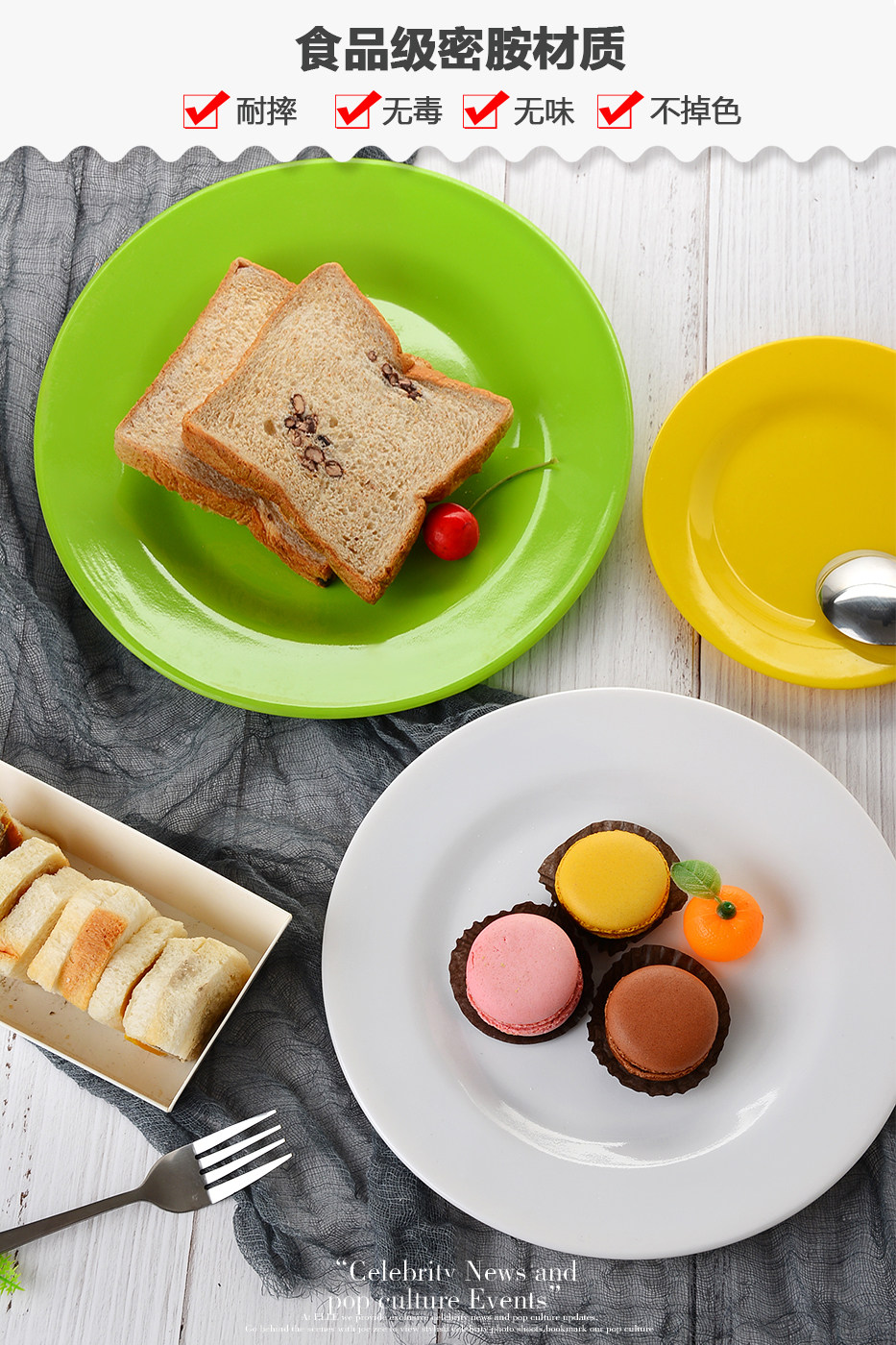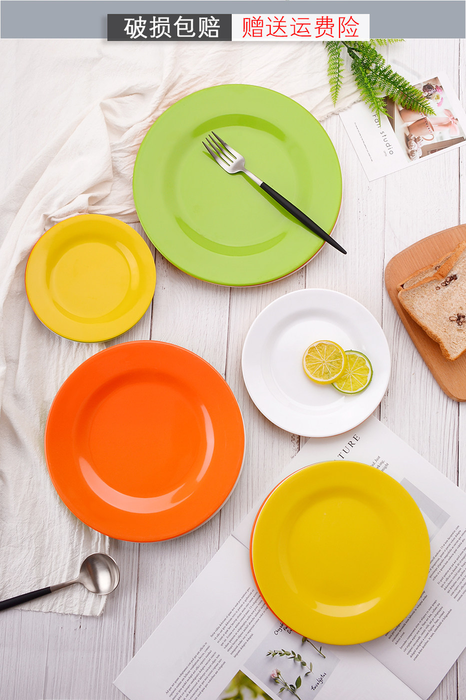 Plastic disc melamine plate color imitation porcelain tableware snack plate dish dish cover pouring rice plate flat plate shallow plate