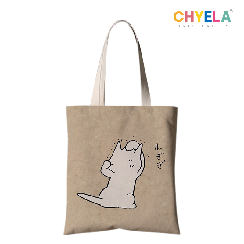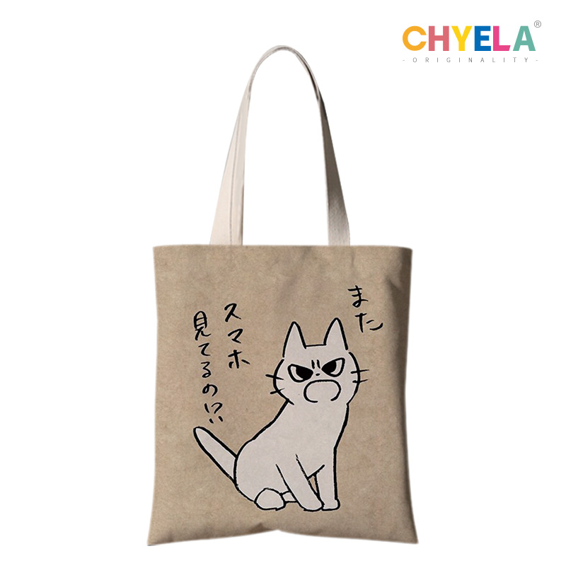 Japanese cute cartoon fried kitten hand-painted illustration simple Japanese-style one-shoulder canvas bag custom bag AU11