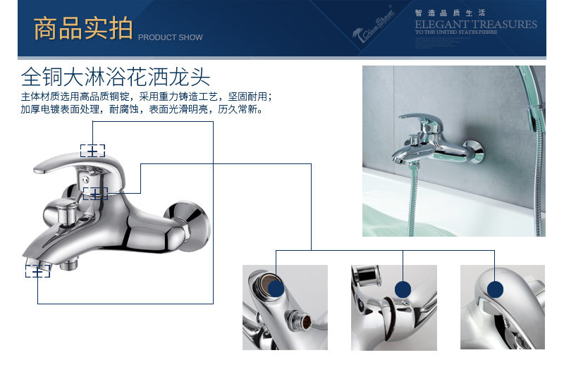 Aihua full copper chromium bath shower with cold bath sheet into the wall triple flower cold and hot tap AH2046