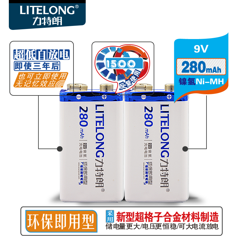 9V rechargeable battery large capacity 9V 9V wireless microphone rechargeable battery 280mAh 6F22 multimeter microphone