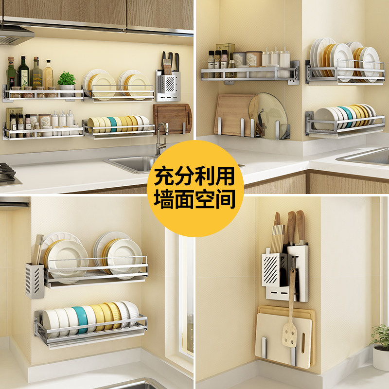 Punch-free cutting board rack Punch-free pot cover rack 3 hooks A glue Punch-free knife rack Punch-free double-barrel chopstick cage Punch-free bowl rack Punch-free dish rack Punch-free seasoning tank rack Single