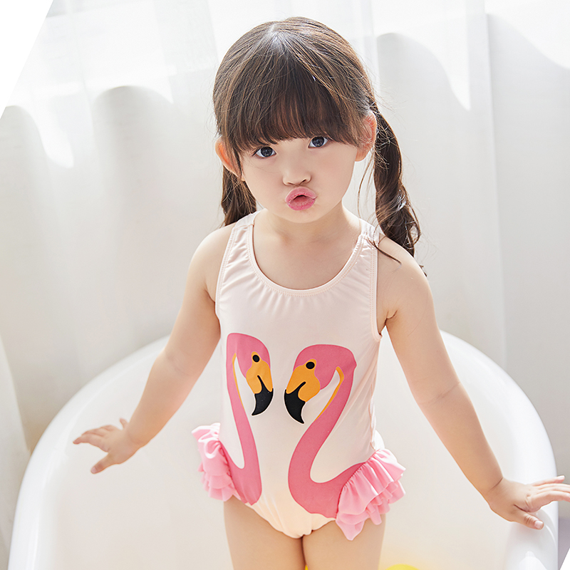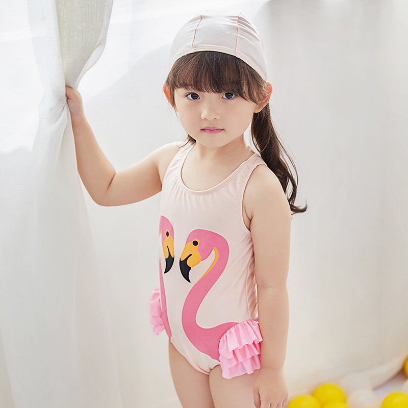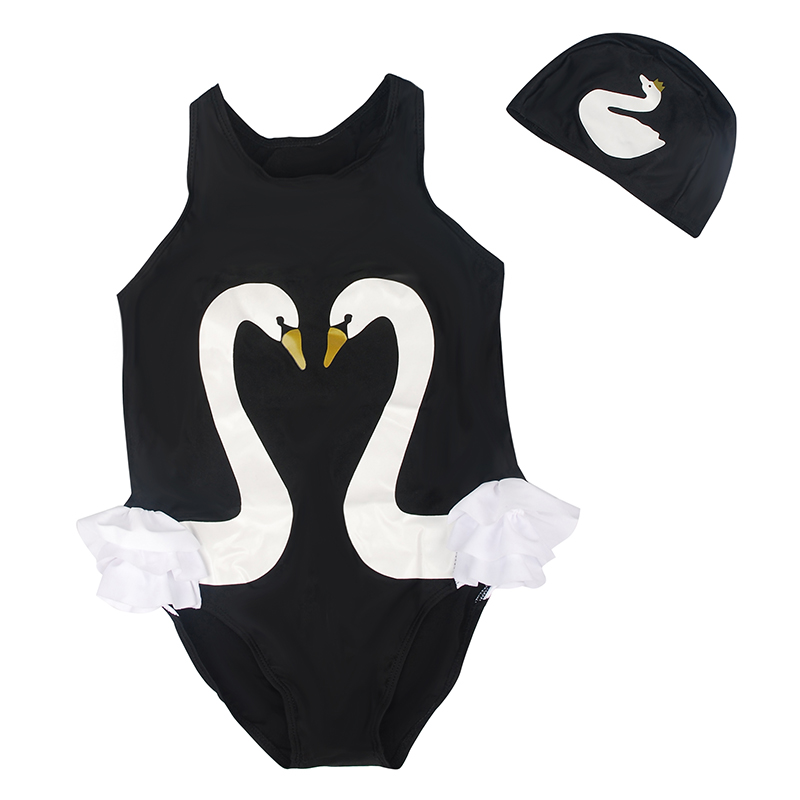 Children's swimsuit girl princess baby black swan swimsuit girl's even body cute little swan edge swimsuit