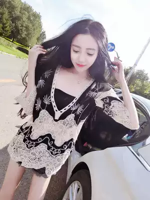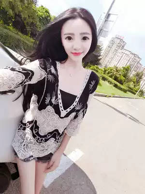 Nightclub clothes 2019 new female thin sexy V collar long version loose hollow blouse lace top summer