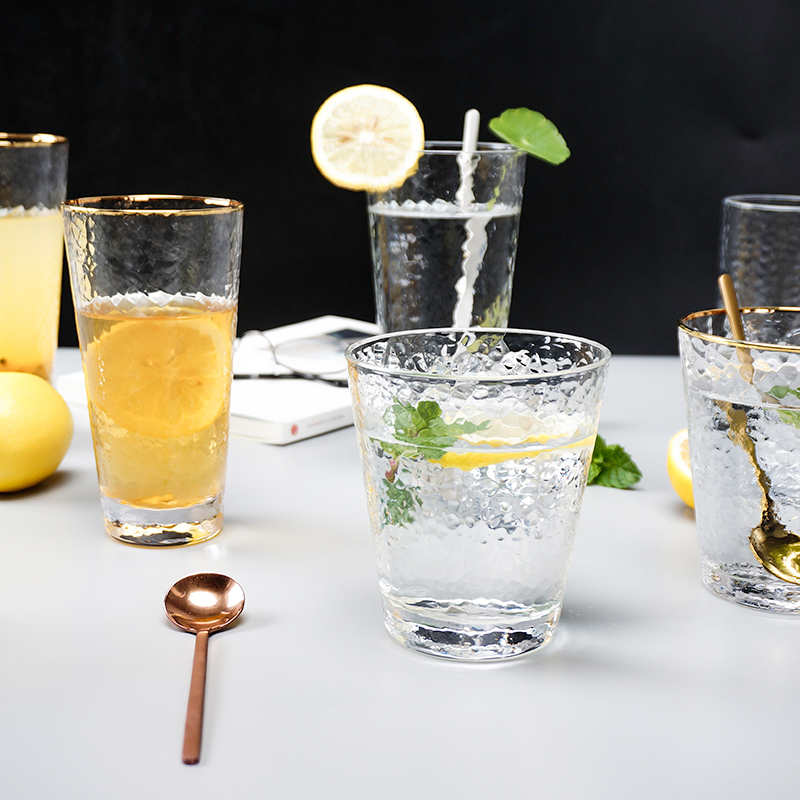 Phnom Penh glass cup water cup home female net red hammer pattern light luxury simple drinking water creative personality ins style suit