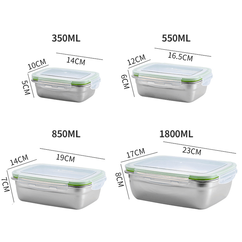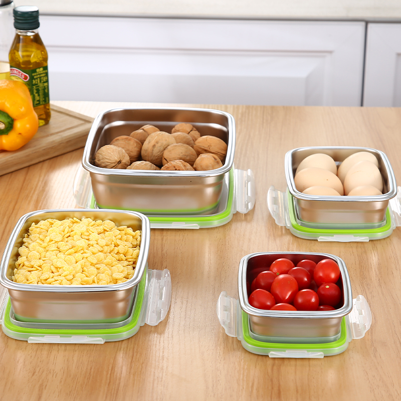 304 Stainless Steel Crisper Box Home Meal Kit Lunchbox Plastic Cover Food Box Putting Fruit Fridge Containing Box