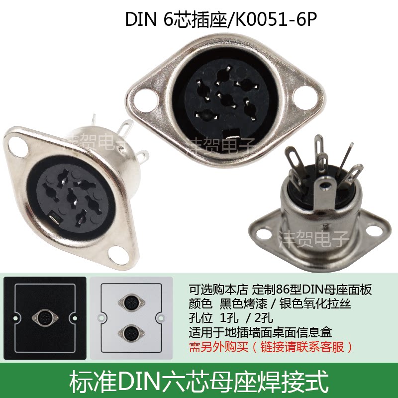 Keyboard plug socket large DIN6P large six-core male head mother seat PIN connector 6 pin S terminal welding type