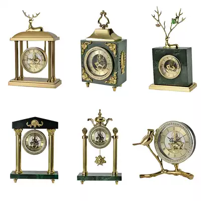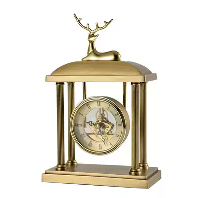 American European-style light luxury copper deer station clock clock retro living room entrance bedside table clock decoration high-end ornaments