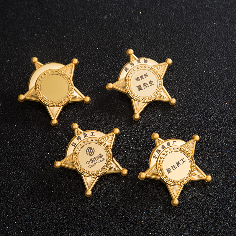 Small badge Metal medal custom five-pointed star Excellent staff catering badge custom enterprise badge School badge custom