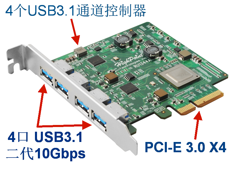 Highpoint Rocket Rocket U 1344A Industrial Class 4 Port 10Gb USB 3.1 II Transfer Expansion Card