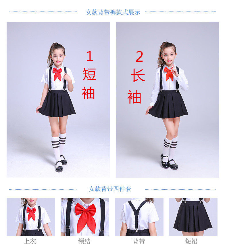 White short sleeve shorts red collar white short sleeve shorts black collar black sleeve trousers black collar white short sleeve trousers red collar white long-sleeved trousers red collar white long-sleeved pants black tie girl short sleeve