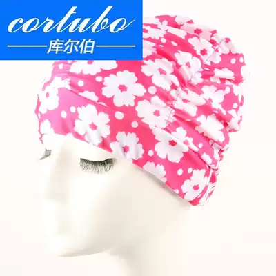 Fashion printed comfortable pleated cloth swimming cap plus size long hair ear protection swimming cap female comfortable and waterproof