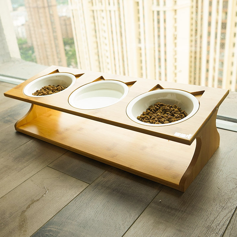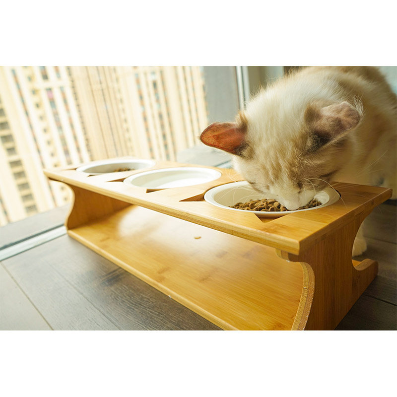 Cat Bowl Triple Bowl Ceramic Cat Bowl Cat Bowl double bowl fixed bracket Pet cat Mimi table Bowl Rack Cat Bowl Shelf